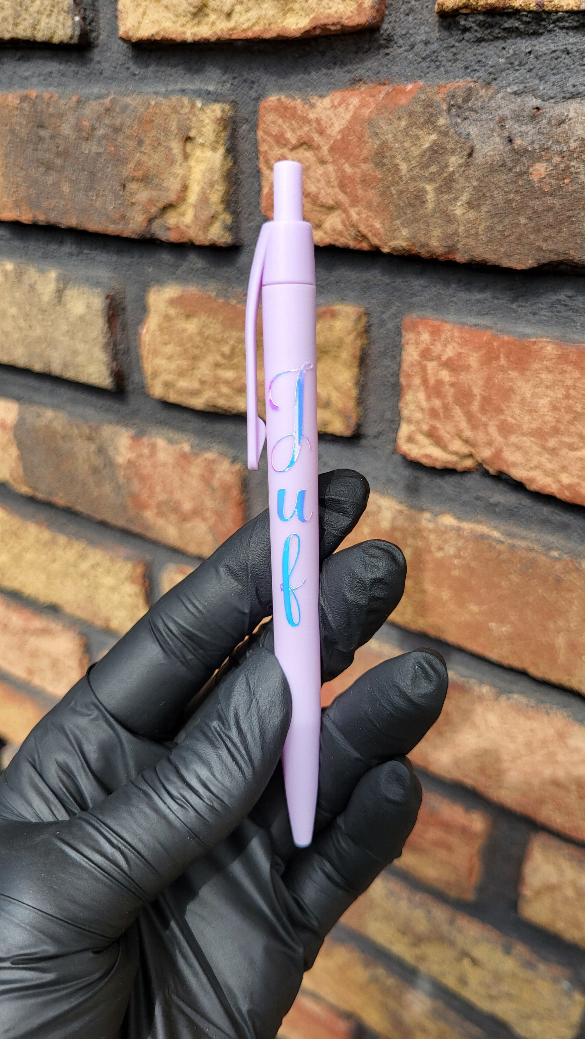 Deze leuke pen heeft de tekst juf of meester, van boven naar beneden.