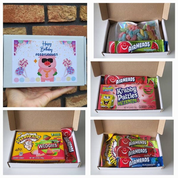 Maak je keuze met verschillende soorten snoep, zowel amerikaanse snoep als een heerlijke snoepmix. Er zitten in elk doosje standaard al 3 smaken airheads raspberry / cherry / watermelon